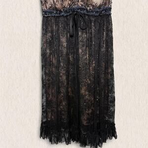 Y2K Marc Bouwer Glamit Black Lace Beaded Midi Babydoll Dress Size 4 Gothic Glam