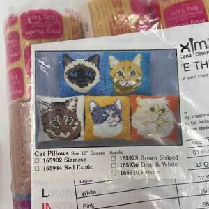 Y2K 2001 Mary Maxim Latch-Hook Rug Kit 16” Square Cat Pillow Acrylic Yarn 165944 Red Exotic