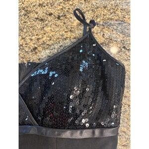 Y2K Masquerade Black Sequin Party Dress Mini Fit & Flare Spaghetti Strap Size M