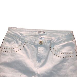 Y2K Masseys Size 10 White Gold Embellished Bedazzled Side Stripe Jeans