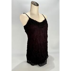 Y2K Maurices Fairy Grunge Lace Crinkle Cami Whimsigoth Forestcore Black LARGE