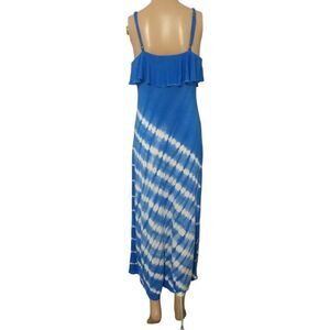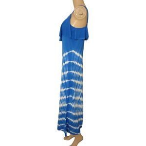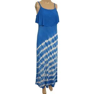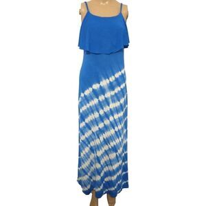 Y2K Maxi Dress Sz SP Studs Blue White Striped Jersey Knit Hippie Boho Nautical. Condition is pre-owned with no rips, tears, holes or discolorations. Vintage 90s to early 2000s. Adjustable shoulder straps. Petite Maxi dress. Very soft and flowy. Tiny silver studs all over the bottom.