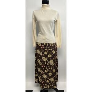 Y2K Floral Maxi Skirt Chocolate Brown Large Whimsigoth Forest fairy Cottage Fall