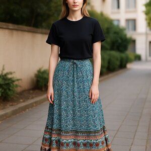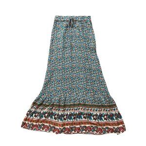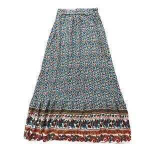 Y2K Maxi Skirt Women Small Blue Paisley Boho Peasant Grunge Cottage Artsy Fall