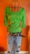 👚 Y2K - Medium - BeBe Green V-Neck 3/4 Sleeves with Cuffs Sweater Gold Accent M
