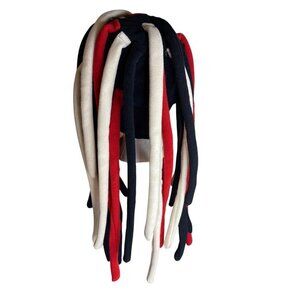 Stay warm in Y2K style with this Mental Youth funky dreadlock winter hat, perfect for skiing or snowboarding. Featuring a bold black, red, and white design, this playful and unique accessory adds a fun, retro edge to your cold-weather look!