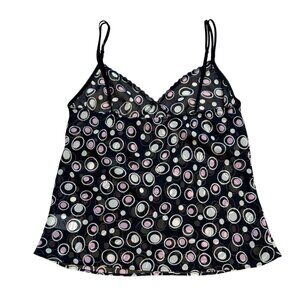 Y2K Mesh Camisole Top Size 12 Circle Pattern Black Pink