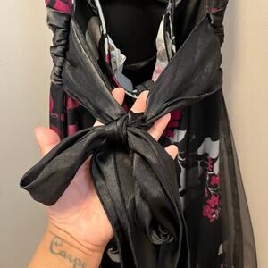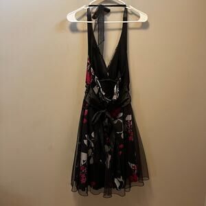 Y2K Mesh Halter Dress Dark Romance Floral Soft Goth Fairy Grunge Vintage Glam