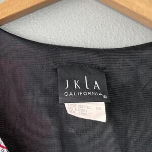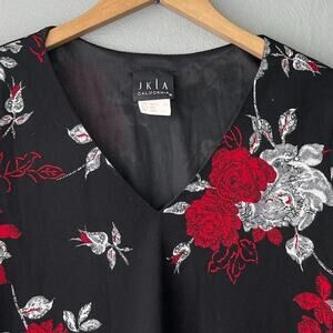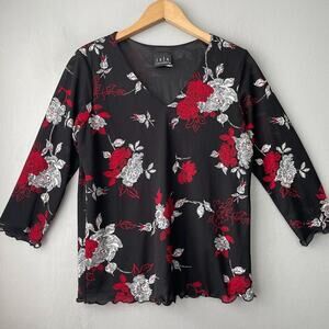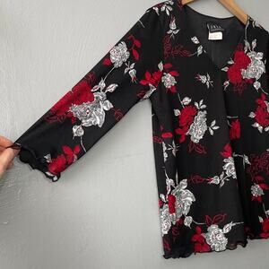 JKLA 3/4 sleeve black, red, and white floral mesh top in Excellent pre-owned condition!