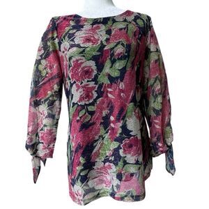 Y2K Metallic Floral Tunic Shirt Pullover QVC Loose Fitting