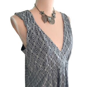 Y2K Michael Kors Blue Grey Geometric Layered VNeck Tunic Tank Top Large