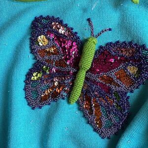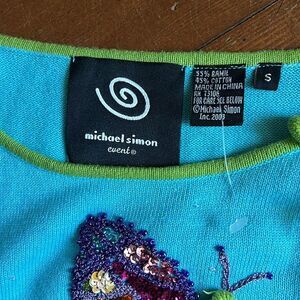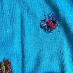 Y2K Michael Simon Blue Butterfly 3/4 Sleeve Top. Size Small