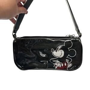 Y2K Mickey Mouse Shoulder Bag Disney Black Red PVC Retro Baguette Style