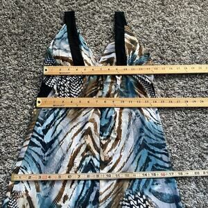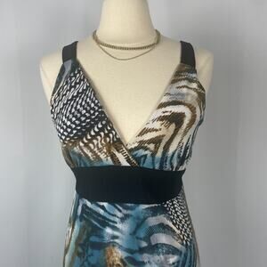 Y2K Midi Dress Size Medium Blue Brown Animal Print Sleeveless Babydoll Stretch