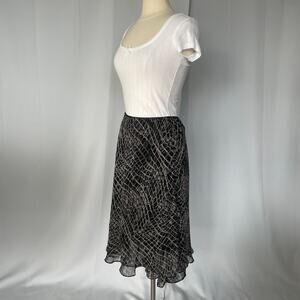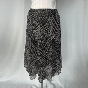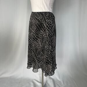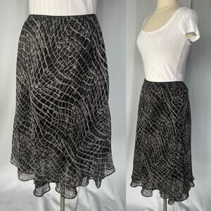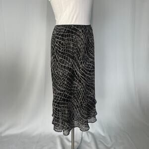 Y2K Midi Skirt Size 10 Petite 10P Black Gray Snake Layered Chiffon Ruffle Fairy