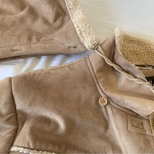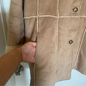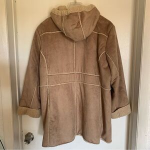 Y2K Mid-length Faux Suede & Shearling Lined Coat Sz 2X Removable Hood Boho