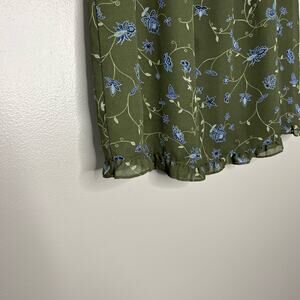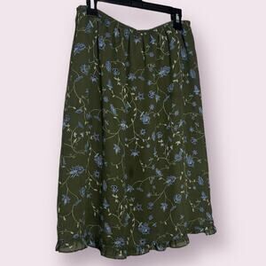 Y2K Milkmaid Fairycore Grandmacore Floral Green & Blue Flowy Skirt Medium