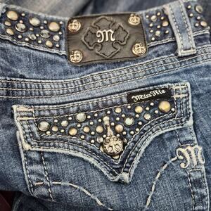 Y2K Miss Me JP4288-4 Low Rise Bedazzled Bling Boot Cut Jeans Dark Aurora Size 12
