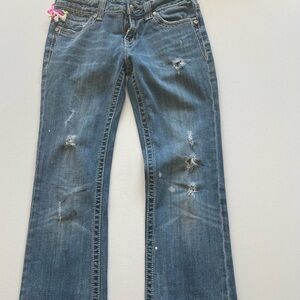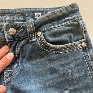 Y2K Miss Me Jean Women Blue Signature Boot Pockets Embellished Bling Size 28x31🔥