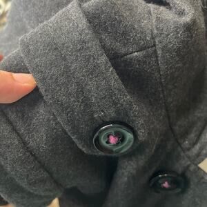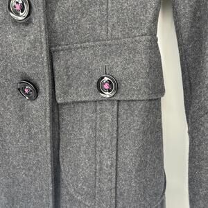 Miss Sixty, M60, wool blend coat, military jacket, hooded peacoat, double breasted, gothic coat, dark academia, Y2K fashion, gray winter coat, structured tailoring, streetwear, coquette noir, Vintage, Whimsigoth,