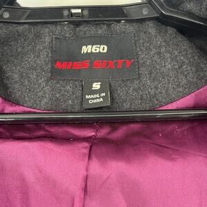 Y2K Miss Sixty Wool Military Hooded Pea Coat Sz S Double Breasted Goth Academia