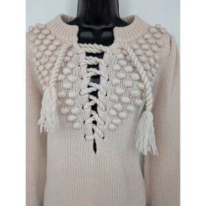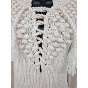 Y2K Moda International Chunky Bobble Knit Lace Up Sweater Women Size M Cottage