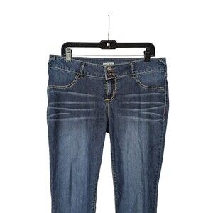 Y2K Mudd Sz 15 Junior's Blue Whiskered Double Button Slim Straight Leg Jeans