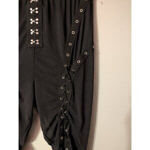 Y2K MyBoo Women’s Black Gothic Lace-Up Eyelet Corset Hook Capri Pants Size S