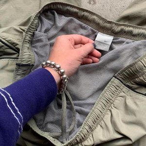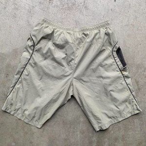 Y2K Nike mesh-lined athletic swim trunks with multiple pockets in gray.