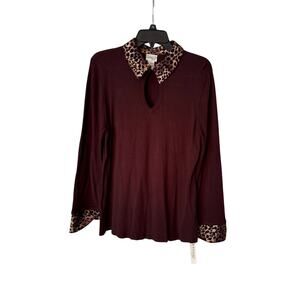 Y2K NWT Kim Rogers Large Brown Blouse with animal print color Women's Large