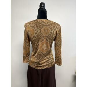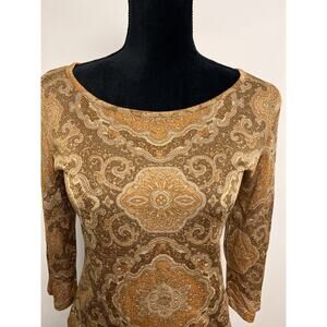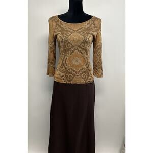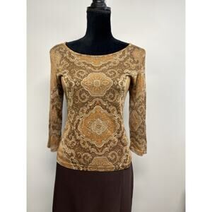 Y2K NY & Co Metallic Mesh Top Gold Copper Small Preppy Glam 2000s Fall Twee