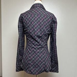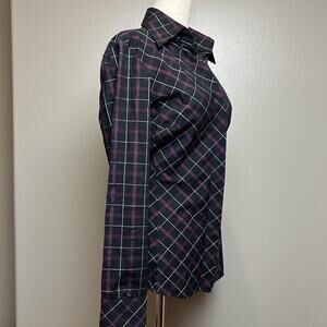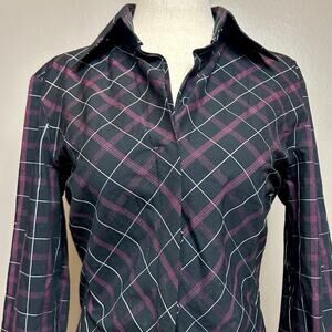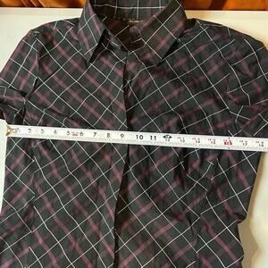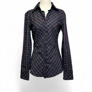 Y2K NY & Co Plaid Button Up Top Size M Stretchy Goth Grunge Office Siren