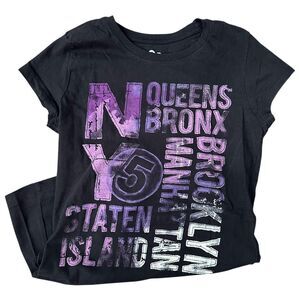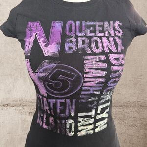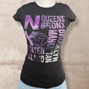 Y2K Vintage So NYC New York Queens Bronx Brooklyn Staten Island lettering tee. Fun purple distressed color. Excellent preowned condition. Classic Y2K graphic top 🗽 Size is a Medium Juniors - Fits like an XXS/S