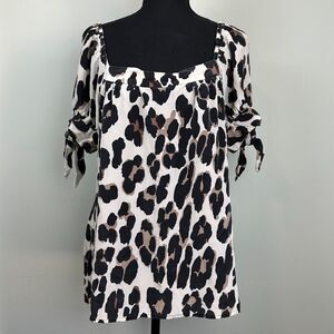 Y2K Nanette Lepore 100% Silk Blouse 8 Leopard Puff Sleeve Peasant Top Fairy Mob
