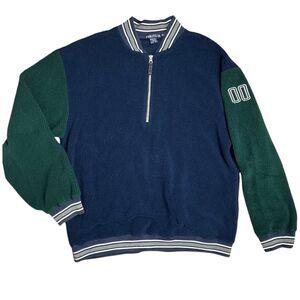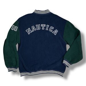 Y2K Nautica Fleece Pullover Mens XL Blue Green Varsity 00 Spellout Retro Bomber