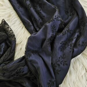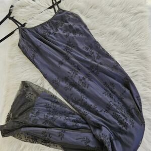 Y2K Navy Blue Black Velvet Burnout Mesh Floral Maxi Slip Dress Medium Whimsigoth