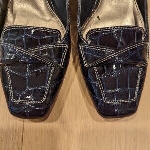 Step out in style with these elegant heels featuring a chic crocodile pattern. Perfect for any occasion.