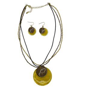 Y2K Necklace and Earring Jewelry Set Yellow and brown Layered Circle Pendant