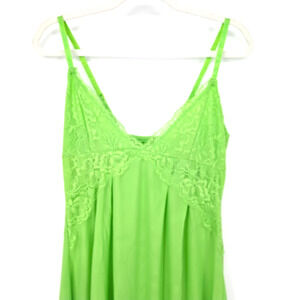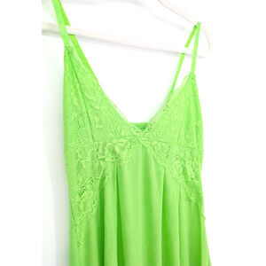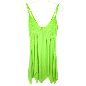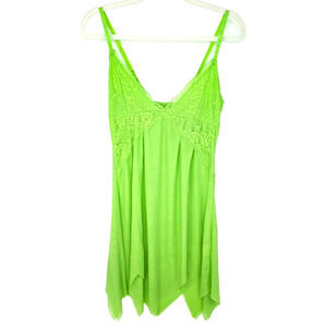Y2K Neon Green Babydoll Fairy Mesh Lace Asymmetrical Hem Whimsigoth Slip Dress S
