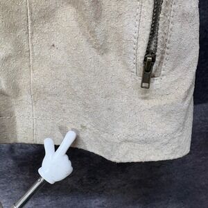 Y2K Neutral Zone Suede Leather Jacket Womens M Tie Belt Beige Utility Neutral