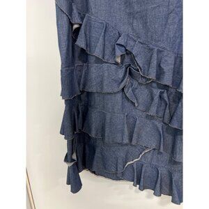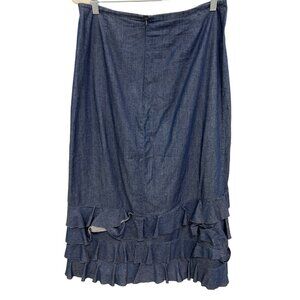 Y2K New Creation Chambray Ruffle Midi Skirt Womens 36 Blue Cotton Blend Retro Ch