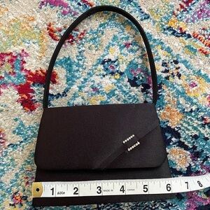 NWOT New without Tags Never Used Y2K 90’s Black Satin Mini Evening Bag with Faux Diamond Detail. Optional Shoulder Strap. No Brand. Super Cute! 💎
