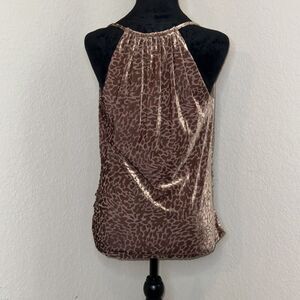 New York & Company Top Womens Medium Brown Animal Print Nylon Stretch Sleeveless.