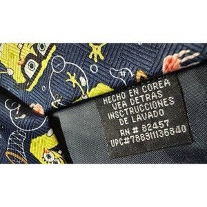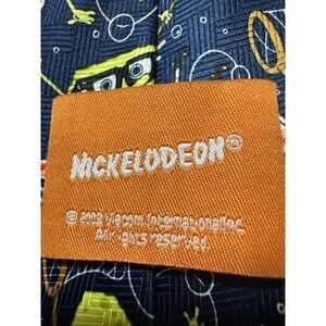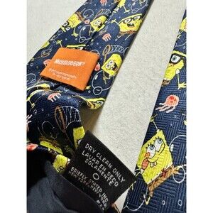 This Y2K Nickelodeon SpongeBob SquarePants neck tie from 2003 features a colorful jellyfishing graphic inspired by the popular cartoon character SpongeBob SquarePants. Made of polyester, this unique collectible showcases the beloved TV show's iconic theme. Perfect for fans of the SpongeBob franchise, this neck tie adds a touch of nostalgia to any collection of animation merchandise.