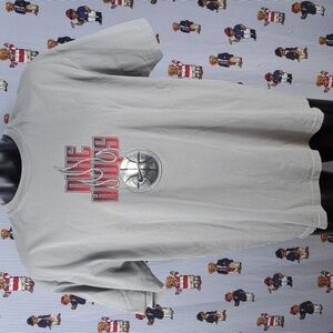Y2K Nike Hoops basketball raised flames spellout graphic grey & red XL t-shirt