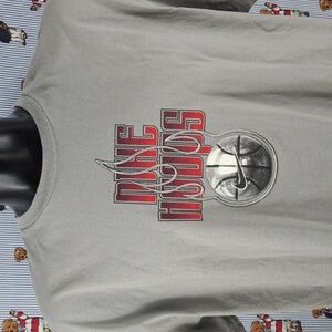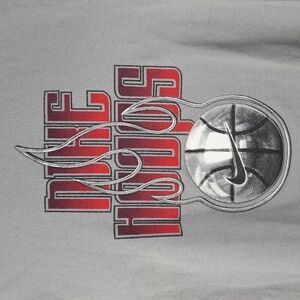 Y2K Nike Hoops basketball raised flames spellout graphic grey & red XL t-shirt