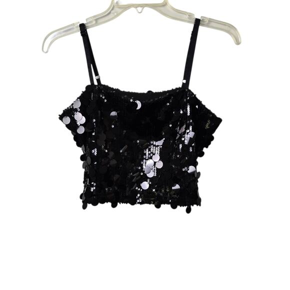 Elevate your party look with this No Boundaries black sequins cami sleeveless crop.