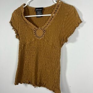 Y2K No Boundaries Crochet Top Smocked Western Caramel Color Top Junior’s Large