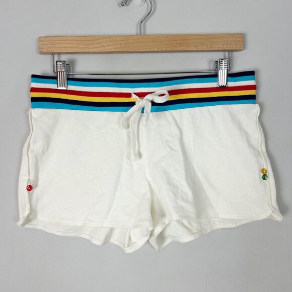 Y2K No Boundaries White Knit Shorts Striped Waistband Retro Sporty Size Medium J