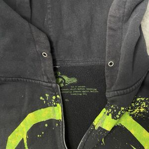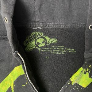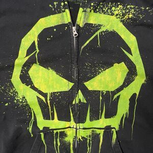 Y2K No Fear Green Skull AOP Emo Skater Zip-Up Hoodie Mens XL